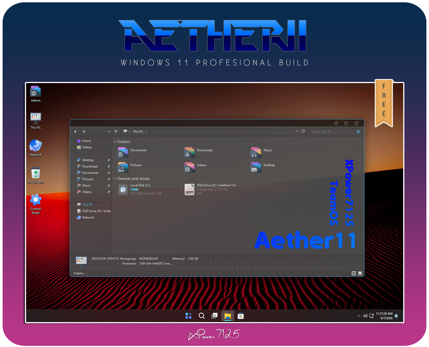 Aether11 - Windows 11 Pro v25H2 Build 26200.8037 Update 04/2026